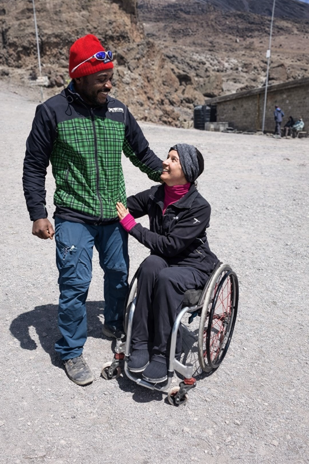 She came to climb Kilimanjaro in a wheelchair. Not because it was easy — because it wasn't. She's American, a full-time wheelchair user due to a spinal cord injury, and she made that climb to raise awareness for suicide prevention and mental health for people with disabilities.